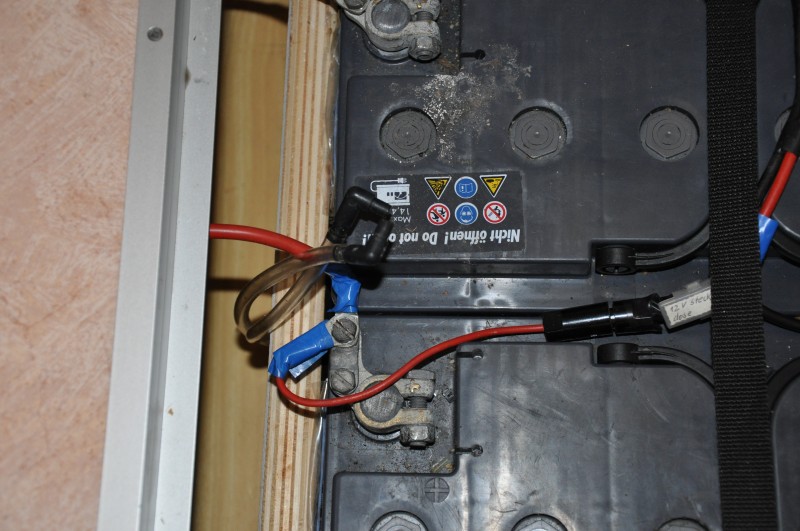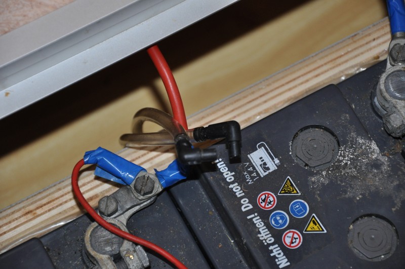 Beim Frühjahrsputz haben wir heute zwei komische Schläuche entdeckt, die aus dem Boden im Batteriefach kommen.
