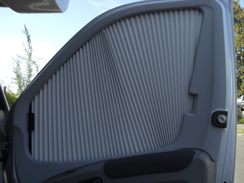 Also bei unserem Ex-Ducato waren die Dinger drin. Befestigung an den Türen mit kleinen Blechschrauben, da werden bestimmt 6-8 Löcher in jede Tür gebohrt werden müssen. Das Klappern habe ich im Laufe der Zeit in den Griff bekommen, allerdings lösten sich die Blechschrauben und mussten öfter mal nachgezogen werden. Die ersten waren dann bald überdreht. Im neuen teilintegrierten Womo ist ein Vorhang zum zuziehen drin, das ist vom Handling aber auch nicht überzeugend. Und wie oben schon geschrieben, will ich auch schnell mal auf- und zuziehen können.