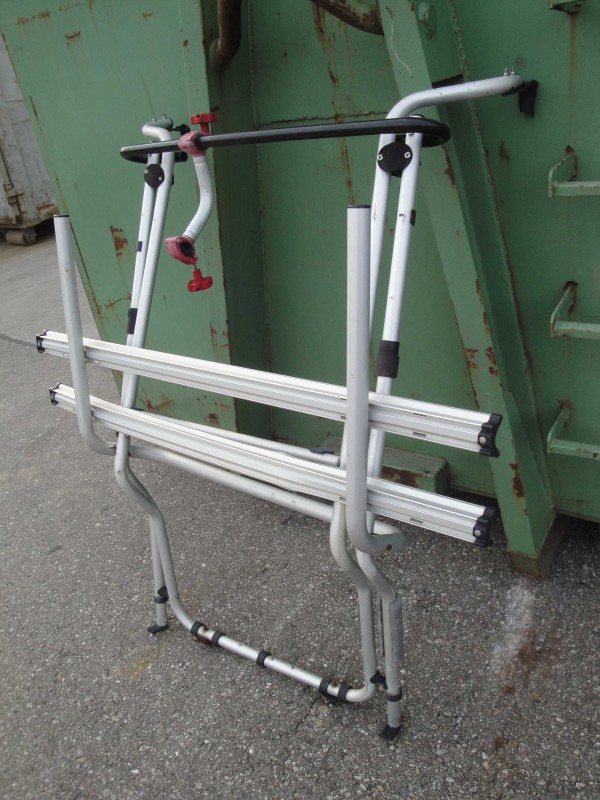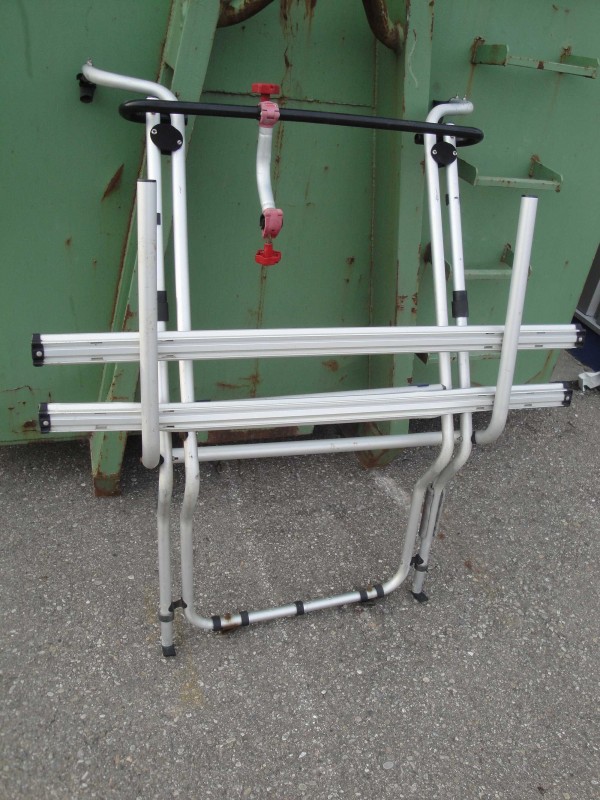 gestern kam auf unserem recyclinghof ein alu - fahrradständer für ein Womo an. die radrinne ist etwas verbogen, stellt aber sicher kein problem dar.