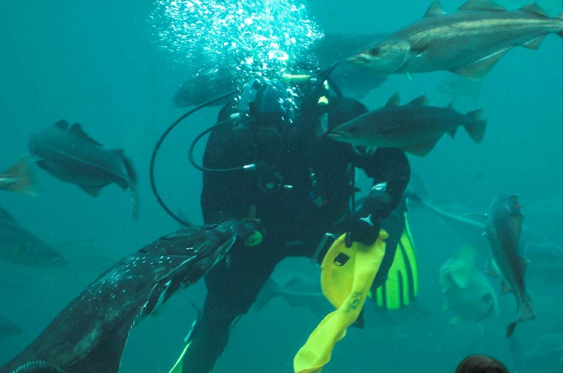 Falls Interesse vorhanden, Vormittags ins Alesund Aquarium gehen. Dort siehst Du fast alles, was so vor Norwegens Küste lebt, kannst gegen 12.00 Uhr die Fütterung der Fische durch einen Taucher erleben usw.. Der dortige Parkplatz verleitet zum kostenlosen Übernachten. Ist in der Saison aber problematisch, weil eigentlich nicht zulässig. Als wir in der zweiten Hälte September dort standen, gab es aber ausser uns niemanden, also störten wir auch nicht. Neben dem Aquarium befindet sich auch der Badestrand von Alesund in einem kleinen Park.