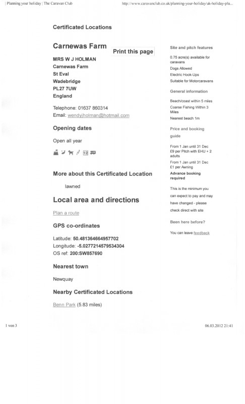 Für unsere WoMo-Tour im August dieses Jahres suche ich noch einen CP oder Stellplatz nahe den Bedruthan steps. In Motorhomefacts und Ukcampsite habe ich nichts adäquates gefunden. Wir mögen es gern etwas kleiner und ruhiger, soweit das in der Hauptsaison möglich ist.