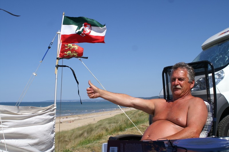 die italienische Flagge immer aufs Armaturenbrett um die Vorfreude auf das Land zum Ausdruck zu bringen bzw. zu geniessen. Finde ich eigentlich eine schöne Idee, wir haben aber noch keinerlei Flaggen irgendwo am WoMo angebracht. Anette Als wir in Schottland waren , haben wir uns eine hellblau weiße Schottlandfahne in Inverness gekauft und bei Einfahrt in jeden CP aus dem Fenster gehängt. Auch bei langsamen Fahrten hatten wir sie am Seitenspiegel befestigt. Die Schotten hat das unheimlich begeistert, sie haben uns gewunken, gehupt und laut juhuu gerufen. War echt klasse, die Freundlichkeit und Zuvorkommenheit und der Humor der Schotten, einmalig und unvergleichlich.