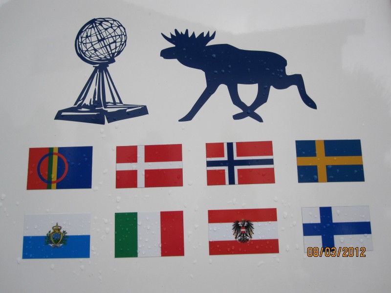 und hier die Gastländerflaggen oben am Heck: ![]() Hallo Volkmar, Danke für die beiden Links! Fahne mit 1,50 m erscheint mir etwas groß, die Folien kriegen möglicherweise Beine unterwegs :wink: und zerkratzen Dir, wenn Du sie deswegen öfter hin und wieder weg nehmen wirst, den Lack. Und: Auf "ALU" kleben sie nicht. Ich werde mal schauen, ob ich nicht entsprechende Aufkleber in F finde, denn generell finde ich die Idee gut! Nochmals Danke. hallo zusammen,