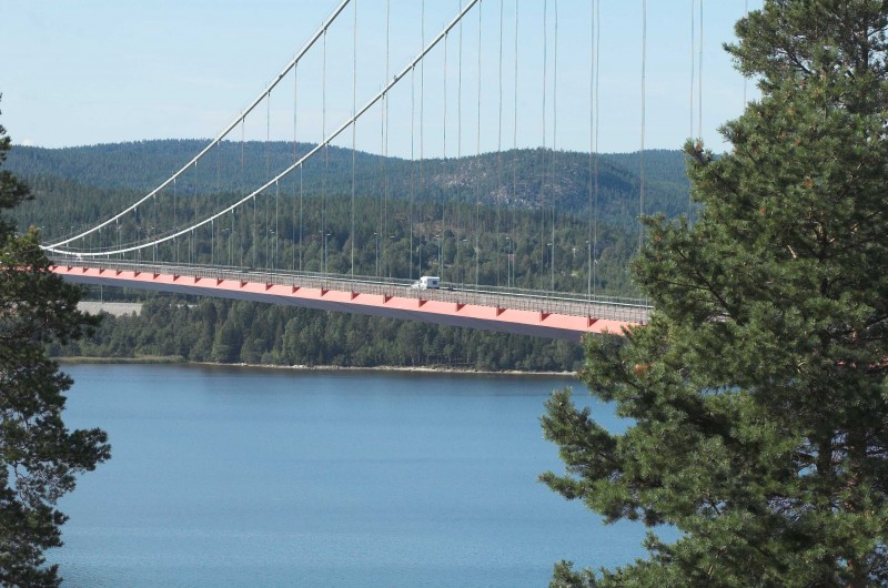 Die Brücke der E4 nördlich von Harnösand(Sundsvall) Je nach Tageszeit gab es nur ab und an einen in D so gefürchteten Mega-Liner zu sehen, die durchaus auch gern zum überholen ansetzen, wenn man ihnen zu langsam ist. jenau...