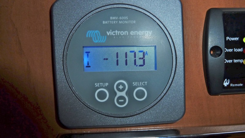 Verbaut ist eine 102AH AGM Batterie die nicht mehr 100%ig in Ordnung ist. Anfangsspannung war 12,3V. Diese ist im Betrieb auf 11,96V abgefallen und hat sich nach dem Test auf 12,2V erholt. Höchster Strom im Betrieb: 131,02A 2 Espresso hintereinander waren kein Problem. Dieser 1500W Wechselrichter ist seit 3 Wochen eingebaut.