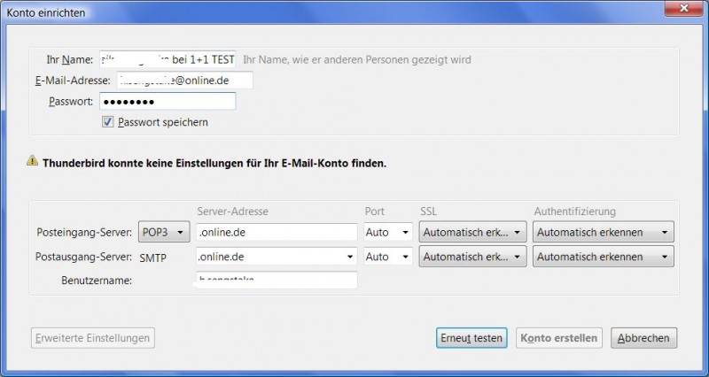 hallo peter, das war ja eine Neueinrichtung als Test. Und ich wunderte mich auch: außer dem Namen+Emailadress+Passwort muß man nix eingeben, Thunderbird ergänzt offenbar den Rest selbst. In diesem Fall ist