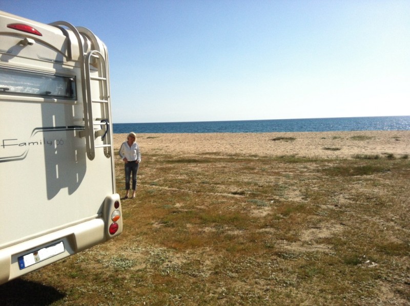 Ein wunderschöner Campingplatz in Solenzara mit Stellplätzen direkt am Strand. Allerdings musste man aufpassen, dass man die 5 Meter vom befestigten Weg nicht überschreitet, weil man sich sonst unangenehm tief in den Sand eingraben kann. Wir waren gerade beim abendlichen Menue gesessen, als ein vollintegrierter Holländer mit einem wahnsinnigen Karacho den direkten Weg zum Strand einschlug. Besorgt sprang ich auf und fuchtelte mit den Händen, was macht der? er winkt mir freundlich zurück und schon hat er sich etwa 40 cm in den feinsten und trockensten Sand eingegraben.