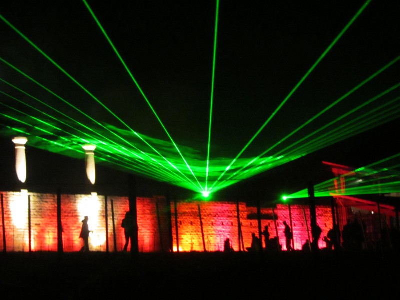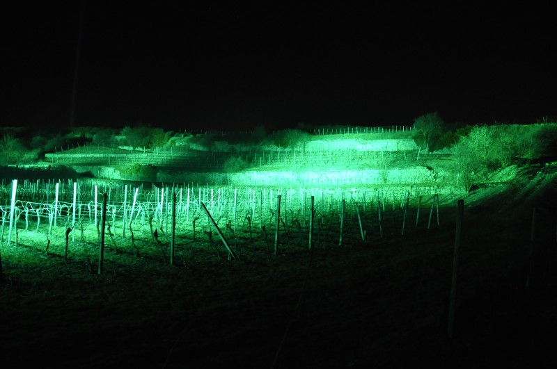 Die Farben wechseln ständig und die Römervilla erstrahlt in grün, pink, lila, hellblau und orange. Und wenn man stehen bleibt und sich umdreht verursacht man zwar einen Stau, sieht aber die Leuchtfinger sich wellenförmig über die Weinberge bewegen und ich könnte ewig stehenbleiben und zuschauen.