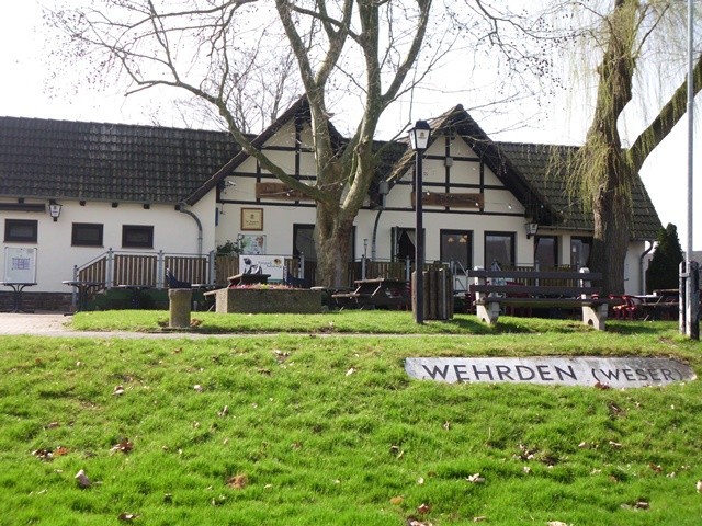 2. Stell Dir einfach einmal vor, von Deinem schönen Foto der "Fährklause" würden nur die Fenster links neben der Tür bestehen. So hab ich den Kiosk an der Weser,besser am Dampferanleger, kennengelernt. In den frühen 90gern wurde durch die Dorfgemeinschaft zunächst der linke Teil des Gebäudes angebaut und ein kleiner Gastraum errichtet. Zwei Jahre nach diesem Anbau wurde dann noch der saalähnliche Anbau gemacht, weil zu dem Zeitpunkt keine andere Kneipe mehr im Dorf existierte. Wehrdener sind in diesem Gasthaus so gut wie nie zu finden, da aus unerfindlichen Gründen die interessierten Mithelfer beim Bau nicht bei der Vergabe des Pachtvertrages berücksichtigt wurden. Bisher hat es inzwischen sechs verschiedene Pächter gegeben, der jetzige hat in den Sommermonaten anscheinend soviel verdient, dass er in der Zeit ohne Radfahrer und weiße Flotte für die Wehrdener nicht geöffnet haben muss. Das motiviert zu einem Besuch.