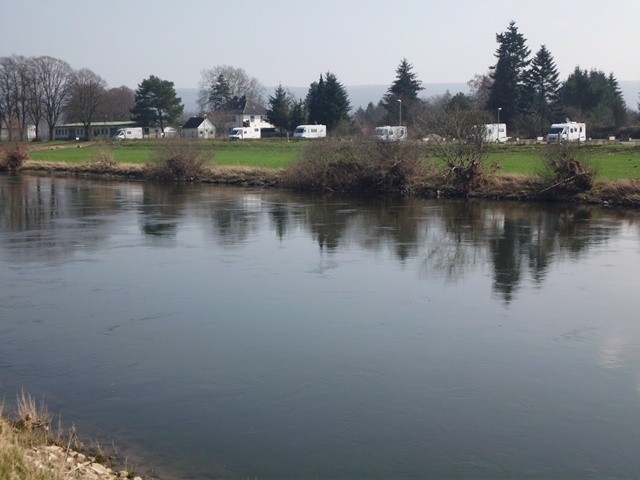Am anderen Flussufer befindet sich eine wenig befahrene Bahnlinie, die aber nur von einem Personenzug befahren wird und nicht sehr stört.