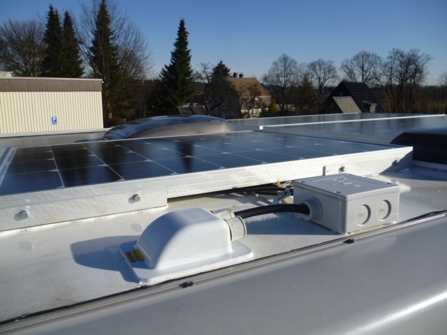 hab ich selbst installiert. Sind insgesamt 340W. Und wen es interessiert, im Moment kommen mal gerade 2 Ampere Ladestrom an. Es ist bewölkt und regnet zeitweise.