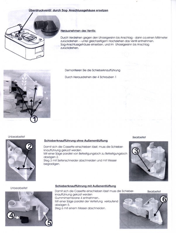 Die Anbauanleitung sagt, das man die Entlüftung am Ausgussrohr anbohren soll, dafür sind auch wohl alles Teile vorhanden. Was aber für mich sinnvoller aussieht, so wurde es auch mal in der pm beschrieben, in dem Deckel und zwar für das Überdruckventil!