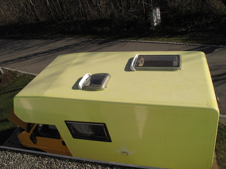 Hallo Namensvetter! :lach: Ja das habe ich selber gemacht! Dach ist innerhalb von 2-3 Stunden komplett fertig geworden, nun sind die Seiten und v+h dran. :eek: Verfahrensweise ist - Abwaschen mit Nanotal Primerkonzentrat in bis 25% Verdünnung; je nach Verschmutzungsgrad.(Mit dem dazugehörenden Tuch)Dann mit Klarwasser nachwischen und auf die "Nebelfeuchte" Lackoberfläche die Nanotol Versiegelung mit der Sprühflasche auftragen (Mit dem dazugehörenden Tuch) und dann nachpolieren oder mit Maschine wenn u hast. Wird so glatt das keine Klebebänder mehr halten... Kann man auch über Fenster und Scheibe machen und es gibt den Lotuseffekt. Mein "Cleancenter" wollte 1300 Glocken dafür haben und ich habe mir das Mittel für ca. 75 € gekauft und verdiene die Differenz mir dann selber :oops: :eek: Soderle, das Wochenende war äußerst produktiv, neben Truma CP Plus Bedienteil und Auszüge in der Küche haben meine bessere Hälfte und ich endlich die 400 Wp aufs Dach gedengelt. Alles schön brav mit Säubern, Entfetten, Primern und ordentlich Verkleben ...... :mrgreen: Jetzt sollten 2 x 150 W und 1 x 100 W die Stromversorgung sicherstellen. Hallo, haben uns gerade noch eine Klima gegönnt :D Die letzten Sommer im Süden waren uns doch etwas sehr heiß ![]() nach der Wäsche traue ich mich auch mein Dach zu zeigen :lol: die nächsten Tage werden noch zusätzlich 2 x 100er Module verbaut, sodas insgesamt 300 oder 350 Wp (falls das 50er bleibt) zur Verfügung stehen. Gruß franz ![]() ![]() zwischen der luke und dem 100er hätte man auch putzen können! ;D früher gut - heute besser! hartmut