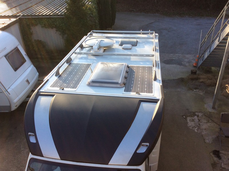 War die einzige Möglichkeit... Servus Jörg, genau soetwas schwebt mir auch vor, die Panele auf dem Alkoven zu verkleben. Kannst Du bitte etwas zu den "Stromspendern" sagen, Leistung und Maße? Und wie hast Du Sie aufgeklebt? Danke! Es grüßt Andreas