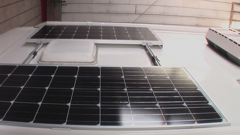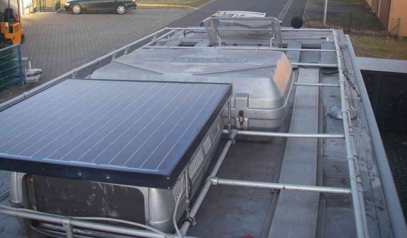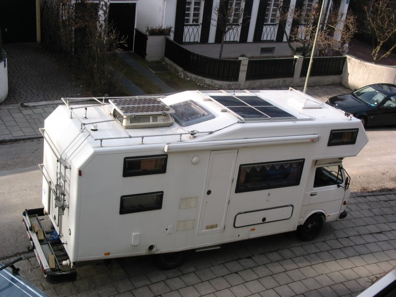 bei mir auf dem Dach sind 4 x 64 Wp und 2 x 35 Wp verbaut. Die beiden auf der Klimaanlage sind 27 Jahre alt und haben noch ca. 75% der Anfangsleistung. Da ich günstig an verschiedene Module gekommen bin, plane ich die beiden alten Module heuer auszutauschen. ![]()