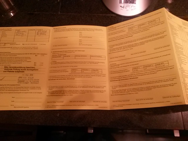 Praxiserfahrung, der TÜV stellt Bescheinigungen aus, die sind weder gelb noch in Buchform. Es ist ein weißes DIN A4 Blatt mit TÜV Logo. Und der nächste TÜV geht wie?
