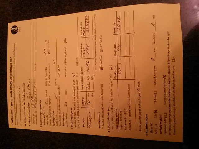 Nein, auch in der Bescheinigung vom TÜV über die erfolgte Gasprüfung