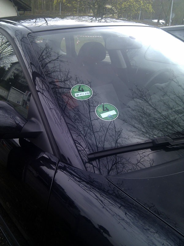 Umrüstung auf grün würde 1000,-€ kosten (plus höheren Spritverbrauch) Geklebt ist keine weil ich Frontscheiben nicht als Litfaßsäule ansehe sondern da durchschauen möchte, und die Dinger beim Scheibenputzen von innen eh schnell zerfallen. macht was draus :D Grün