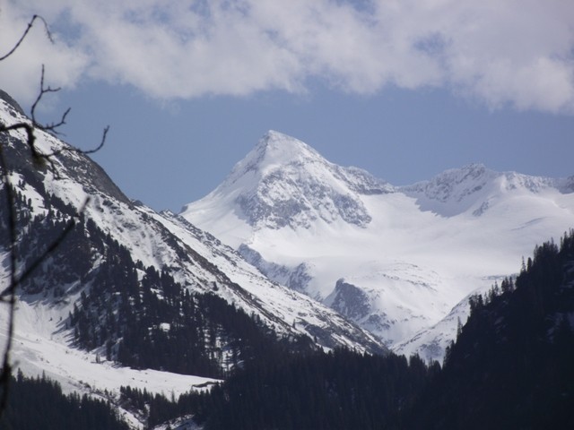 rundum hohe schneebedeckte Berge