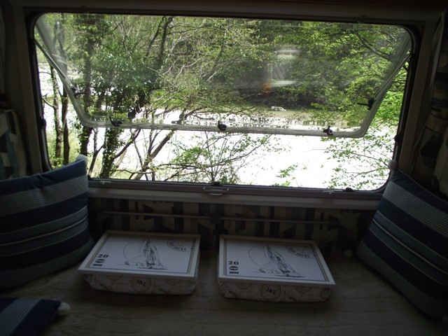 unser "Sofa" mit Aussicht und den praktischen Knietabletts.