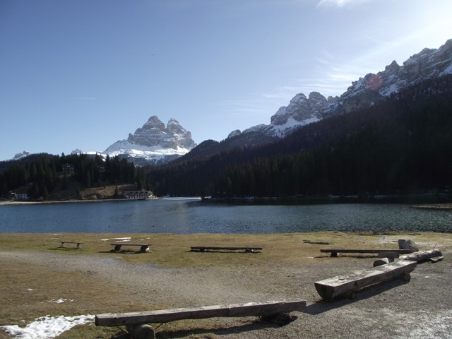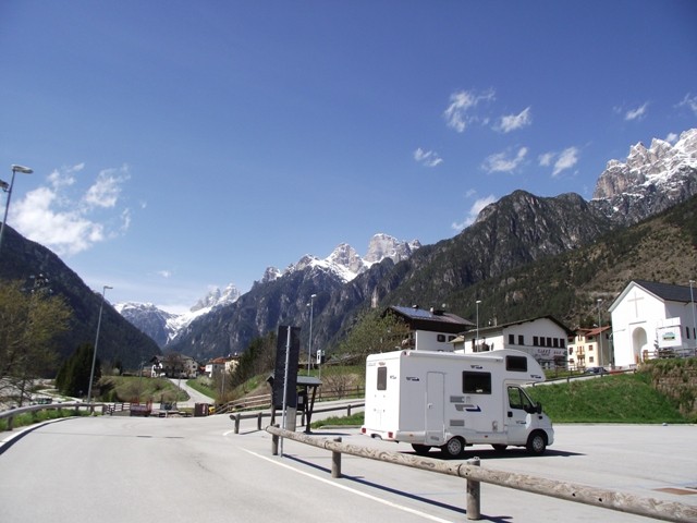 Wir wurden um 7 Uhr vom Hahnengekrähe aus der Nachbarschaft geweckt. Also aufstehen, Frühstück, Säuberungsaktion und dann ging es wieder auf die Strasse. Von Jesolo aus Richtung Treviso, zuerst die A 27, später dann, als die Berge begannen, auf die Prosecco-Strasse....:))) ( man kann dort in den Orten überall leckere Spanferkel-Brötchen und ein Glas Prosecco bekommen, mhhhhh ) auf der Landstrasse weiter bis zum Lago die St. Croce, weiter bis Auronzo .....von dort aus die atemberaubende Aussicht auf die Drei Zinnen genießen .....und dann einfach da stehenbleiben. Direkt am Flussbett in der Nähe der Bobbahn haben wir dann unser Womo geparkt und uns etwas gekocht, einen kühlen Prosecco getrunken und unsere Stühle in die Sonne gestellt. Der Blick auf die schneebedeckten Berge ist wirklich Luxus. 16 Tage sind wir nun unterwegs, das ist noch nicht lange, was haben wir schon alles gesehen auf unserer ersten großen Tour. Morgen gehts weiter nach Österreich.:)) Da ist dann wenigstens der Diesel günstiger. Italiens Dieselpreise haben da schon ein heftiges Loch in unserer Urlaubskasse hinterlassen, doch das hat sich gelohnt. Italien ist einfach wunderschön und wir werden es niemals leid werden, dort hinzufahren Lago di St. Croce