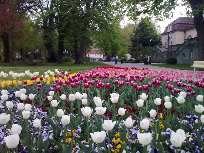 Bis zum 30. April sind wir nun auf dem Stellplatz Friedburg geblieben. Jürgen hat die etwas beschwerliche Wanderung ( teilweise heftige Kraxelei auf allen Vieren ) zur Ruine Friedburg ohne mich gemacht, ich habe nach einer halben Stunde den Rückweg angetreten, ich hatte tatsächlich Höhenangst. Die steilen Abhänge, alle Trampelpfade sehr schmal und kein Geländer. Es war mir echt zu gruselig. Ich sass zitternd und schwitzend am Abhang und traute mich nicht einen Schritt weiter. Bin dann einfach ohne nach unten zu schauen wieder zurück zum Womo gegangen. Es hat eine ganze Weile gedauert, bis ich aufgehört habe zu bibbern. Jürgen fand die Kletterei toll und ich freute mich auf die Neuankömmlinge, die auf den Stellplatz fuhren. Echt Klasse : Wir haben hier oben Leverkusener mit ihrem Womo getroffen und es war ein herzlicher und wirklich schöner Kontakt mit Claudia und Heiner. Als ehemalige Leverkusener hatten wir natürlich viel zu bequatschen , auf diesem Wege liebe nach Schlebusch......:)))), es sind nämlich Forumsmitglieder. Am 30.4. morgens hatten wir dann wieder die berühmten Hummeln im Hintern. Ich bin noch fix ins Netz, da ich zwei Geburtstagsmails loswerden mußte und Jürgen erledigte die notwendigen Verrichtungen am Womo. Leider gabs dann zum dem Stellplatz einen ärgerlichen Aspekt und hinterließ einen bitteren Nachgeschmack. Jürgen ging bezahlen : 3 Nächte a´ € 8,50 = € 25,50. Nein, die Dame wollte € 31,50... mhh ?? Wieso ?? wollte Jürgen wissen. Die Wirtin wollte Internetgebühren. Das war uns noch nie passiert, egal wo wir in den den drei Wochen gestanden haben, jeder Stellplatzbetreiber ( außer in Italien ein älterer Mann, der wohl nicht mit dem Internet zurechtkam ) gab sofort das Passwort frei und wir konnten jederzeit vom Womo aus kostenlos ins Netz. Ich musste hier auf dem Stellplatz mit dem Schleppi bis zur Haustüre des Restaurants, im Womo gabs schon kein Netz mehr. Jedenfalls wollte sie eigentlich sogar € 8,00 für Internet, großzügig und ganz schön schnippisch erließ sie € 2,00 !! Ehrlich, es geht nicht um die paar Euros, nein, sie hätte es von Anfang an sagen sollen. Für die knapp 1 1/2 Stunden in drei Tagen, die ich im Netz war, einfach so hinterher Geld zu verlangen, das fanden wir nicht ok. Wir vermuten, dass sie sauer war, dass wir im Restaurant nichts verzehrt haben. Ich hatte in Italien so viele Lebensmittel eingekauft, die mußten erst einmal weg. Also habe ich selbst gekocht. Was solls. Wir wollten uns die Laune nicht verderben lassen, das lohnte sich nicht und sind dann Richtung deutsche Grenze gefahren, vorher noch voll getankt ( € 1,45.7 pro Liter Diesel ) und kamen dann gegen 15 Uhr in Bad Reichenhall an. Dort waren wir auf dem großen freien und kostenlosen Parkplatz ( der nachts gut beleuchtet ist ) an der Rupertus-Therme und fanden dort schon einige Womos. Das Wetter war wunderschön und wir machten uns auf ins Städtchen. Wie immer mußten wir unbedingt ins Cafe Reber mit seinem barocken Gold und Rot und dem verführerischen süßen Prunk. Wie schön doch Kalorien sind !!!:))) Danach ein großes dunkles Bier im Braustüberl und ein paar Kaminwurzen beim Metzger, die Salinen besucht und im Kurpark in der Sonne am Springbrunnen verweilt. Bad Reichenhall ist immer wieder schön und erholsam. Abends hatten wir noch sehr netten Womonachbarkontakt und wir waren noch einmal gemeinsam im Städtchen und es war wieder ein rundum schöner Tag. Um 10 Uhr war bei uns Zapfenstreich und wir machten das Licht aus und hatten eine wirklich ruhige Nacht. Cafe Reber
