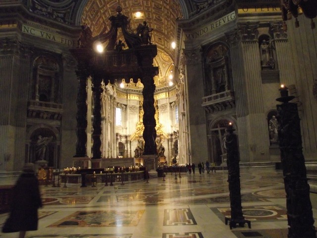 Draussen am Bahnhofsvorplatz wird z. Zt. heftig gebaut und die Busse fahren etwas chaotisch von ihren jeweiligen neuen Halteplätzen ab. Wie immer, wenn wir nach Rom kommen, wollen wir zuerst in den Petersdom. Nicht, weil wir so fromm sind, nein, es ist einfach für uns das phantastischste Kunstwerk überhaupt. Ich konnte mich wieder nicht bremsen und habe 156 Fotos gemacht. Ich weiß nicht, wie viele ich schon auf dem PC daheim habe.