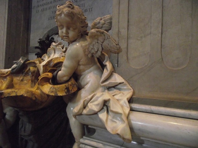 Diesmal habe ich mich auf Engeljagd gemacht und war erstaunt, wie viele verschieden Sorten Engel der Petersdom aufweist. Verspielte nackte Putten, die irgendwelche Portraits frommer Mäner halten, Brunnenengel, Grabengel, Türengel... jedes ein kleines Meisterwerk für sich.
