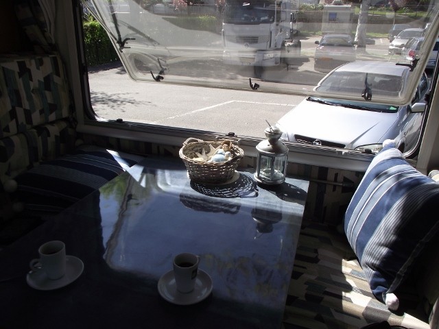 Zuerst haben wir uns einmal einen Espresso gemacht, dann eine Flasche Roten auf und den Tag Revue passieren lassen. Alles in allem hat alles wunderbar geklappt. Wir Neucamper sind happy.