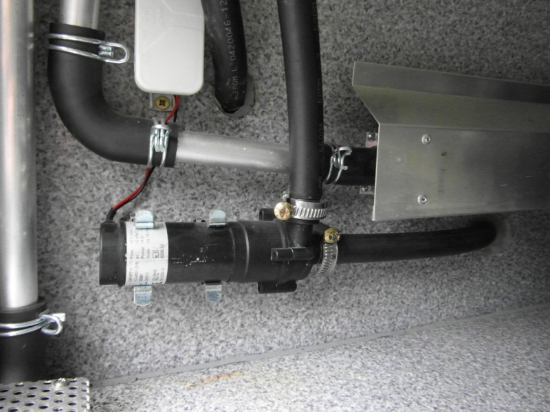 Die Pumpe für den WT sitzt bei unserem vorne links im Staukasten.