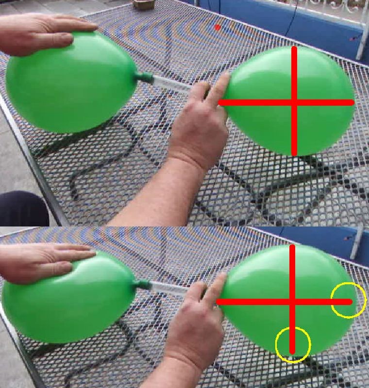 Dabei habe ich nicht mal sehr drauf gedrückt! Das ober rote Kreuz habe ich mit Cut+Paste unten eingefügt und an den oberen und linken Rand geschoben, damit man die Volumenänderung besser erkennen kann. Wenn ich auf den linken Ballon drücke (Lasterhöhung) dehnt sich der rechte sofort aus. Was, außer einem Druckausgleich durch Druckerhöhung könnte dies wohl verursachen? Bei aller Theorie: 1) Ich habe es am WoMo mit dem Tiremoni gemessen. 2) Ich habe es mit den zwei Ballonen optisch erkennbar gemacht. Für mich ist es 100% klar, dass eine Gewichtszunahme des Fahrzeuges auch zur Druckerhöhung im Reifen führt. Aber ich lese eure theoretischen Betrachtungen dennoch gerne weiter. :) ich denke mal der wesentliche Unterschied zwischen einem Ballon und einem Autoreifen besteht darin daß der Ballon elastisch ist und sich bei Erhöhung des Innendrucks ausdehnen kann, während der Autoreifen konstruktionsbedingt sein Volumen nicht vergrößern kann (Stahlgürtel etc)