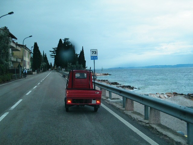 Die Fahrt über die Autobahn zog sich dahin, gegen 12 Uhr am Gardasee angekommen. Der Anblick war nicht so überwältigend wie erwartet, denn es hat die ganze Zeit geregnet. Aber die Fahrt an der Ostseite bis nach Lazise haben wir genossen.
