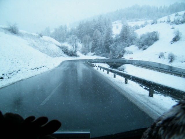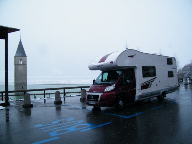 Den Reschenpass haben wir mit Schneeverwehungen überstanden trotz Sommerreifen.