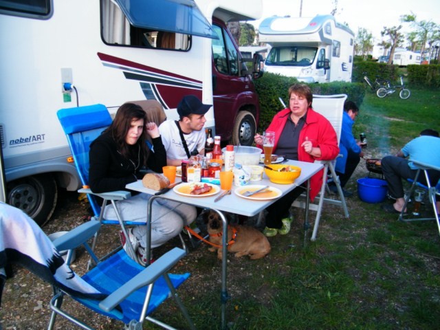 Wir sind dann etwas oberhalb auf einen etwas geschotterten Platz gefahren, obwohl uns ein Berliner Kollege bat, doch die Plätze unterhalb zu benutzen, da wir ihm die Sonne und die Sicht nehmen würden.