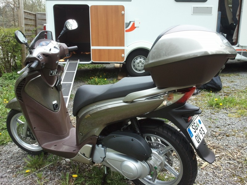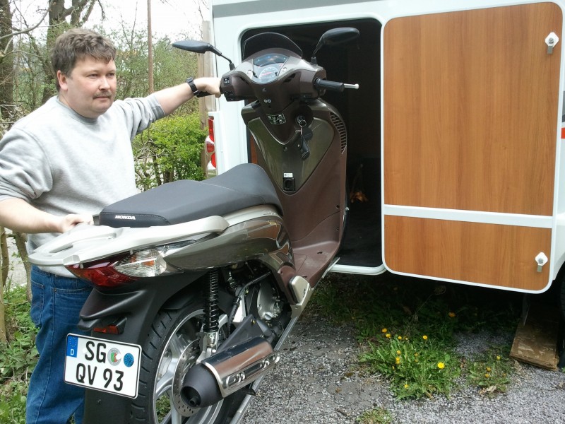 Und da so viele Nutzer eines Wohnmobils zweifeln, ob ein Roller denn nu passen täten, pflanz ich das Ding dann mal bebildert für euch hier in meinen 101 PS Carado und hab dann ganze 115 PS. :D