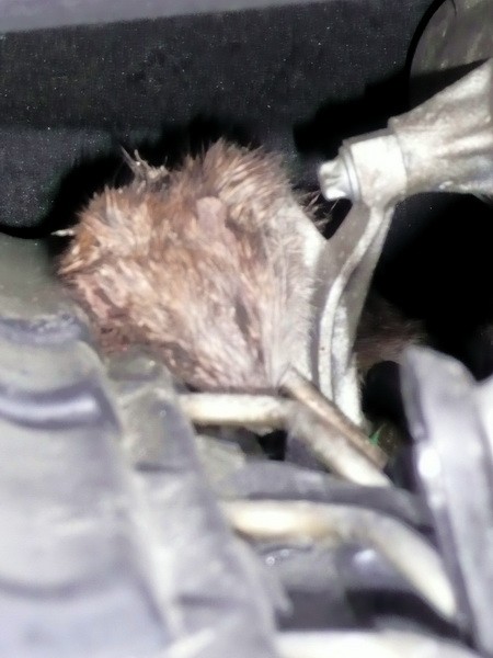 Vermutlich hat ein Marder die Ratte im Motorraum deponiert. Die Ratte wird wohl nicht selbst reingeklettert sein.