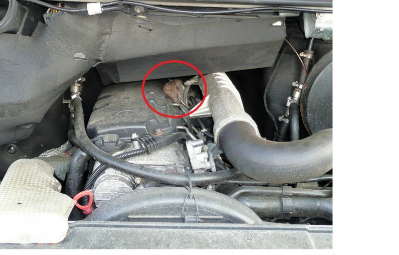 In unserem PKW hatte sich im Motorraum auch mal ein Marder häuslich mit Verpflegung niedergelassen.