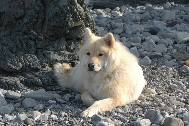 sibirischer Seewolf, friedlich, wachsam und sehr verschmust, leider nur bis Mai an Cornwalls Stränden gern gesehen. Dann unter Androhung von Geldbußen keine Zutrittserlaubnis mehr.