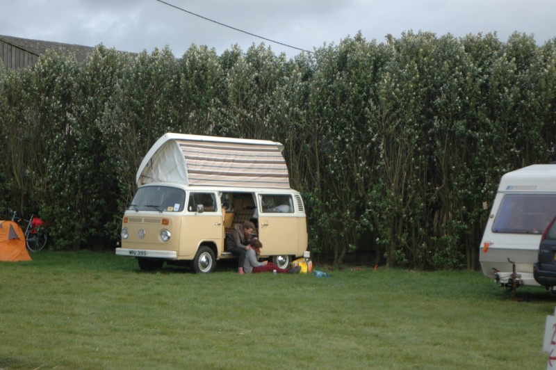 Erster typisch englischer Campingplatz. Gerade stehen geht nur mit Hubstützen oder einer ganzen Menge von Keilen