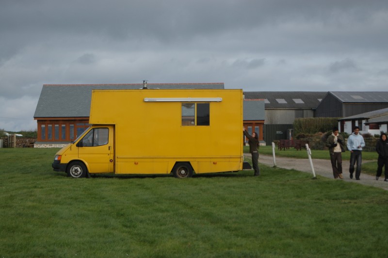 Abends kochten wir den obligatorischen Tee, er schmeckte scheußlich. Ich dachte erst, ich hätte eine Geschmacksverirrung. Fakt war, dass wir Screenwater, also Scheibenwischwasser mit irgendeinem Mittelchen drin eingefüllt hatten. Wir haben alles weggekippt, den großen Tank entleert (ja, in die Pampa...) und Wasser aus einem "Loch" nachgeladen zum Spülen des Tanks. Immer mit der Gießkanne hin und hergelaufen. Und das bei typisch schottischem Wetter, Nebel und jede Menge Regen. Wieder ablassen, am nächsten Tag "richtiges" Wasser geholt.