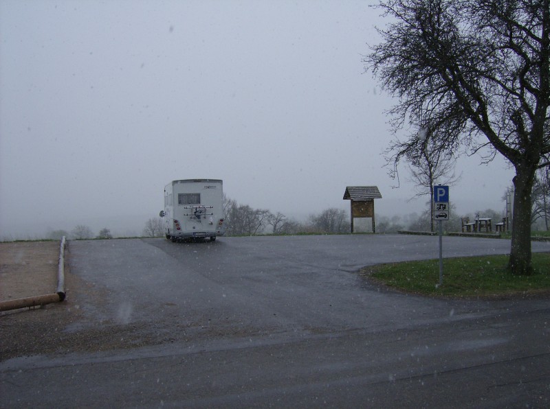 Leider kann man durch den Schneefall nicht die Landschaft erkennen.