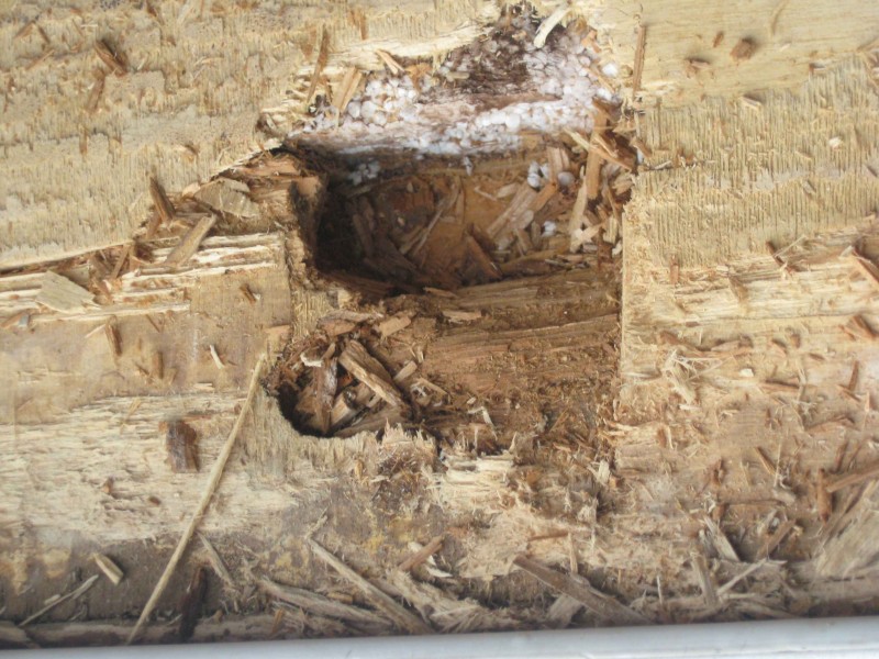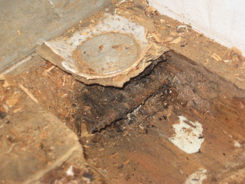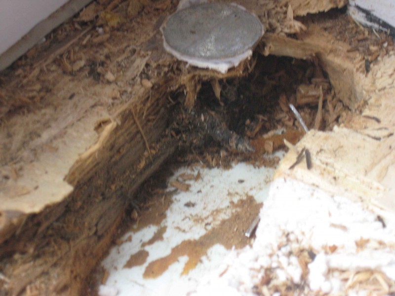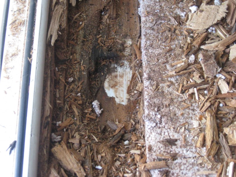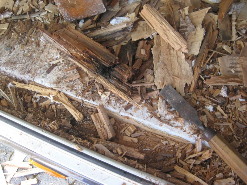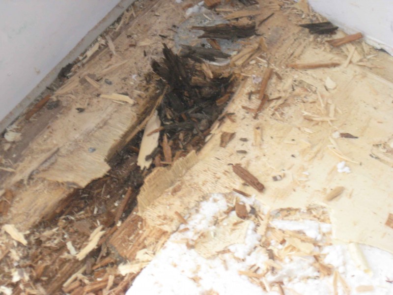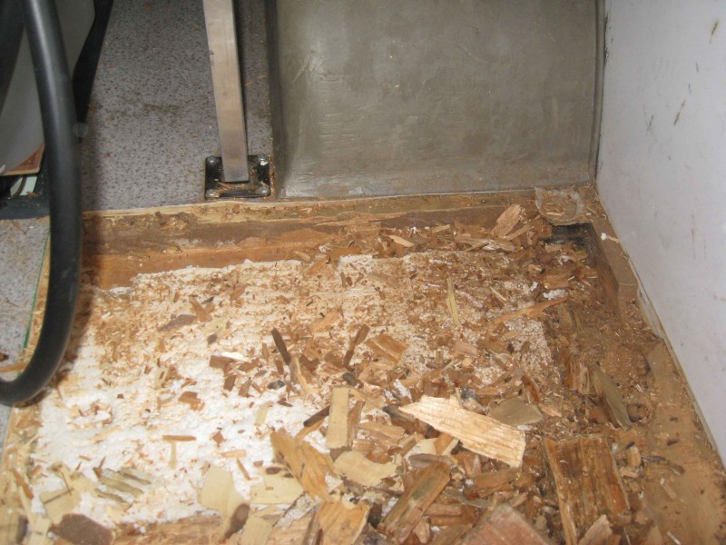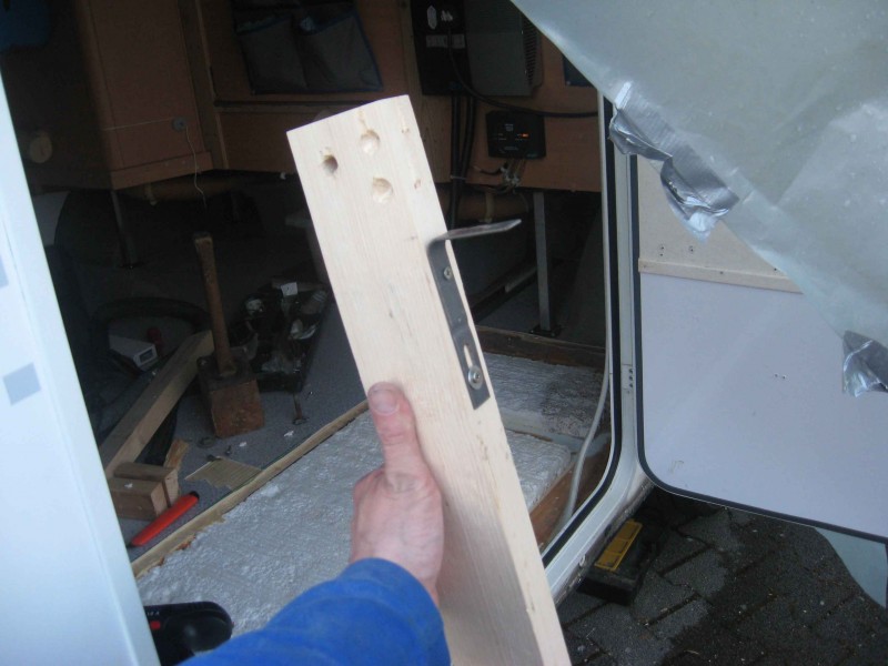 Die damalige Korrektur war nach der jährlichen Dichtigkeitsprüfung 03 oder 04 2009. Beleg muss ich in unserer Buchhaltung (Archiv) suchen lassen. Ich war so beunruhigt, dass ich heute mit der Freilegung (und dann auch Reparatur) beginnen musste. Hier ein paar Bilder. Die Fahrerseite (hinten) muss wohl auch korrigiert werden. Man sieht, dass die Feuchtigkeit durch die waagrechten Schrauben eingedrungen ist. Gleichfalls durch die nach unten gehenden Befestigungsschrauben, welche den Aufbau mit der Karosse verbinden. Diese Verbindungen hat EURA mit einer speziell von Eura (in Zusammenarbeit mit der Kirche) entwickelten Dichtmasse abgedichtet. Nennt sich Gottvertrauen (ob es das Zeug in Tüten, Flaschen oder Dosen gibt, weiß ich noch nicht). Da war nichts. Diese Schrauben gingen komplett unabgedichtet durch. Dass das Holz an dieser Stelle keinen Bock mehr hatte, kann ich verstehen. Wenn das überall so ist... ...dann "Gute Nacht". Hätte nicht gedacht, dass ein Womo, was nicht wirklich günstig ist, so billig zusammengeschustert wird. :cry: