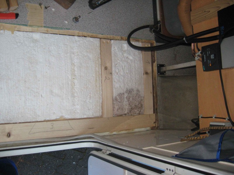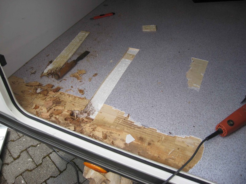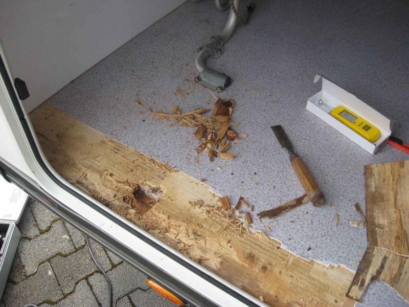 in 2009 wurde bei meinem Womo ein Feuchteschaden festgestellt. Im Bereich der seitlichen unteren Abschlussschiene. Hier hat sich heraus gestellt, dass EURA zu lange Schrauben zur Befestigung benutzt hat. Als Verbraucher wird man darüber leider nicht informiert. Meine EURA-Werkstatt hat den Schaden auf Garantie behoben (dachte ich) alle Werte waren in den Folgejahren SUPER. Letzte Kontrolle vor 4 Wochen. Nun wollte ich das Auto verkaufen und habe bei Eigenmessungen hohe Werte an drei Stellen des Bodens (Doppelboden) meines Wohnmobils. Genau da, wo der Feuchteschaden vor drei Jahren auch war. An den Stellen ist die Oberseite des Bodens (vermutlich Holzplatte) weich. Ein Fuß ist bereits ca. 3mm in den Boden eingedrückt. Ich scheue mich noch den Belag aufzuschneiden - aber muss sein. An der unteren Außenseite ist GFK. Gleichfalls ist in der Ecke, wo es feucht sein soll von unten ein senkrechtes Kantholz zu erkennen. Zwar leicht schwarz angestrichen aber halt doch zu sehen. Warum man sowas konstruiert kann ich nicht verstehen. Ich hatte nun geplant, die innere Oberseite des Bodenbelages aufzuschneiden (PVC und die vermutete Sperrholzplatte 3-4mm???), die Dämmung kontrollieren, eventuell erneuern, und dann mit Riffelblech anstelle von PVC wieder zu verkleben. Um unter den Stützfuß des Doppelbodens zu kommen, wollte ich den Boden ganz vorsichtig leicht hoch drücken. Eventuell mit einem Wagenheber. Oder muss ich das alles anders machen? Kennt jemand den Schichtenaufbau im Boden von Eura? Welche Dämmung muss ich verwenden? Welche Überraschungen können noch auf mich zukommen. In meine Eura-Werkstatt will ich verständlicherweise nicht wieder gehen. Vorab vielen Dank Hallo Jens,