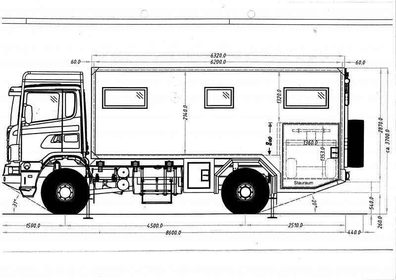 Eine Frage hätte ich noch: gibt es einen Grundriss von dem Aufbau? Nur, damit wir uns schon mal vorstellen können, wie Euer Mobil aussehen wird.