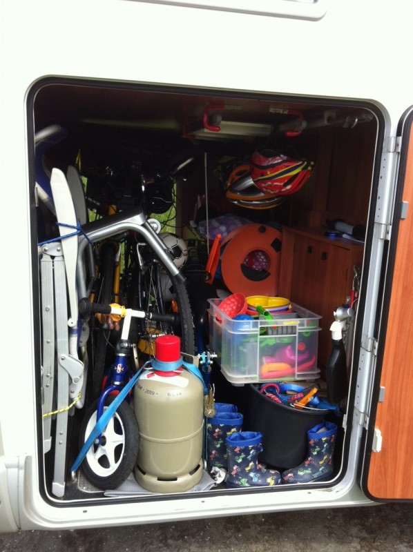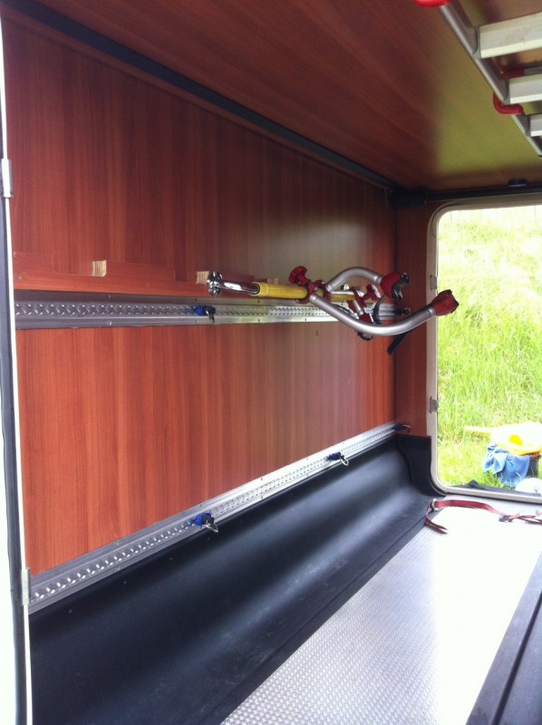 ich hab jetzt beim einladen in Holland extra Foto´s für euch gemacht :D So schaut unsere Hechgarage für einen 2 wöchigen Strand und Spielurlaub an der Nordsse aus. An mir liegts nicht, mir gehört nur ein Fahrrad und der Akkuschrauber...... Die Rückwand mit Befestigung für die Räder: