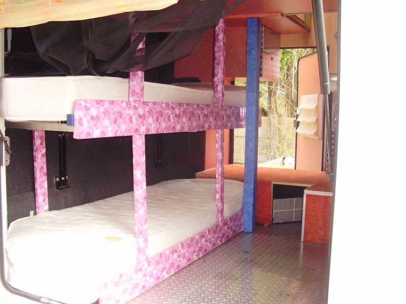 Um leichter ins Bett zu kommen, haben wir selbiges weiter heruntergefahren (Motor), und dadurch hat sich die "Durchreiche" beträchtlich verkleinert. Das wiederum hat die Zielgenauigkeit erheblich reduziert - vor allem ich mit meinen kurzen Armen habe da so meine Probleme - mit dem Ergebnis, dass wir vor dem weiten Öffnen der Heckklappe erst einmal schamhaft alle malerisch drapierten Wäscheteile ihrem Bestimmungsort zuführen müssen. :D Uuups.... die kurzen Arme hat natürlich nicht der Paul, sondern die habe ich, sein Weib.