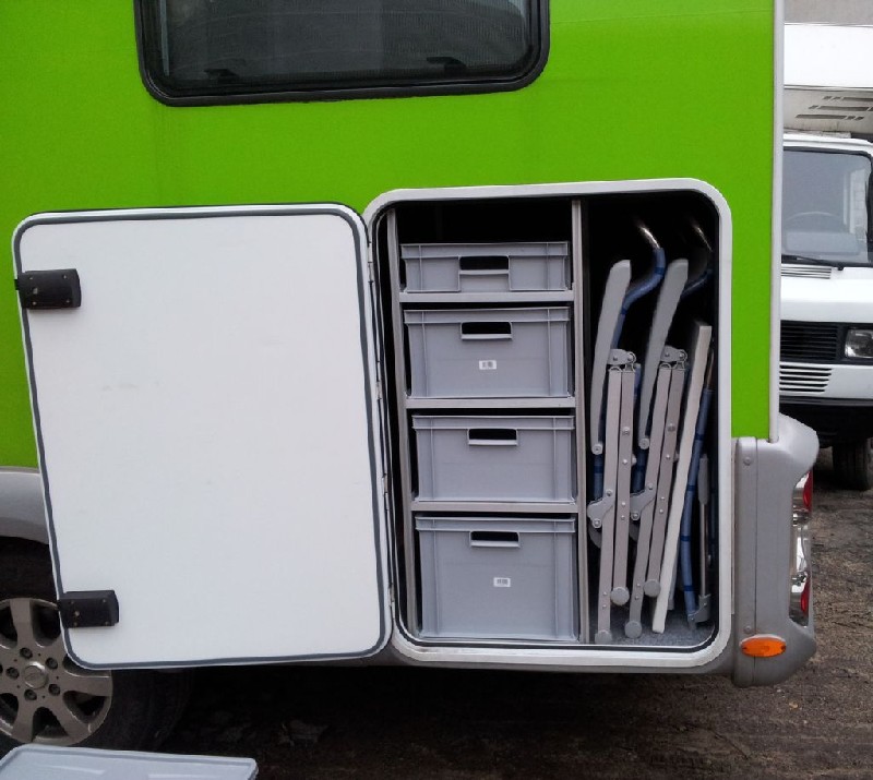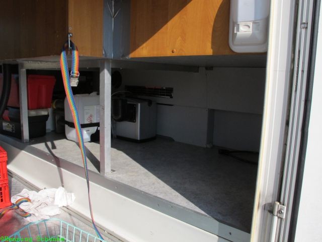 ich bin beeindruckt! ich wünschte unser Keller zuhause wäre so organisiert :eek: Und so sieht`s bei uns in der Garage aus :) ![]() ![]() Regal Marke Eigenbau Viele Uwe Hallo zusammen, die Heckgarage ist die nächste größere Baustelle. Im Moment kann ich darin nur alles stapeln, aber nichts aufhängen oder Einzelteile schnell erreichbar verstauen. Viele haben darin richtige Regalsysteme und ganze Kistenbatterien. Aber die haben auch eine größere Heckgarage, weil die unter einem Heckbett liegt. Bei mir ist sie etwas kleiner durch die Hecksitzgruppe, aber bei sinnvoller Organisation sicherlich groß genug. So sieht sie im Moment aus von rechts... ![]() ...der Bereich unter der Sitzgruppe... ![]() ...und von links: ![]() Das soll alles rein: ![]() Dazu noch ein Fahrrad, eine zweite Wohnbatterie und ein Gastank von etwa 100 Litern. Tisch und Stuhl möchte ich schnell ausladen können, ebenso möchte ich ein bis zwei Kisten mit Vorräten oder Sachen für den Haushalt gut erreichen können, genauso wie die Wasserkiste, die zum Wasserfassen gebraucht wird. Um an Werkzeug und andere nicht so häufig gebrauchte Sachen dranzukommen, kann ich auch mal das Fahrrad ausladen und ein bisschen kramen. Das Fahrrad passt ganz gut rein, wenn es mit dem Lenker in Fahrtrichtung rechts steht. Dann passt neben das Hinterrad auf der anderen Seite noch ein Stapel Kisten. Der Gastank sollte schon in der Garage sein, damit das LPG mit höheem Butananteil auch im Winter noch vergast. Sonst kann ich nur 95/5 Propan tanken. Wenn es aber gar nicht passen will, muss der Tank eben außen unter den Rahmen. Für den Aufbau der Regale kommt mir das hier recht sinnvoll vor: --> Link. Bei den Kisten bin ich auch nicht zwingend auf die schon vorhandenen Robusto-Boxen festgelegt. Die waren nur greifbar, als ich schnell passende Kisten brauchte. Schmalere und etwas höhere Kisten wären für meinen Zwecke besser. Ich möchte auf der linken Seite neben dem Fahrrad gerne drei Kisten als Schubladen übereinander haben. Dazu noch eine herausnehmbar über den Batterien. Gibts da Ideen? Wer hat eine vergleichbare Garage schon ausgebaut? Falls sich jemand fragt: Wozu der Aufwand für ein paar Wochen Urlaub? Falsch, das WoMo ist mein Zuhause, das ganze Jahr über. Henning Diesen Beitrag gibts auch in meinem Blog: --> Link Hallo zusammen, nachdem ich nur eine kleine Garage (wenn man das so überhaupt sagen kann) zur Verfügung habe muss man eben den Platz optimal ausnützen. Wir haben alles mit was wir benötigen, dann ist es aber wirklich voll hinten drinnen ;) Das Bett ist bei uns immer heruntergeklappt damit wir zum Übernachten einfach stehenbleiben können und ohne umzuräumen jeder in sein Bett springen kann. Eigentlich ist die Garage absolut ausrechend, denn mehr Gepäck würde auch nur mehr Gewicht bedeuten und das geht sich dann nicht mehr aus mit 3,5 t. Inhalt: Reservereifen, Schlauchboot, Luftpumpe, Wagenheber, Campingsessel, Liegenverlängerung, Klapptisch, Beachrolly, Ausgleichskeile, Kabeltrommel und Werkzeugkiste. ![]() ![]() ![]() ![]() LG Chris Wir haben unsere Garage erst letzten Monat umgebaut. Von Fahrrad auf Roller. 8) Wen es interessiert: --> Link Köpikurt