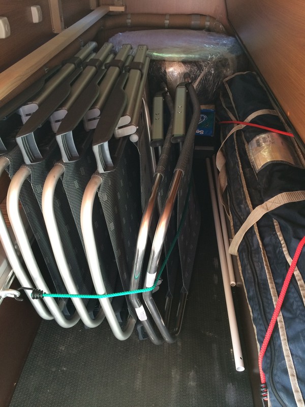 Das kenn ich! ... so, auch unsere Garage ist jetzt sortierter. ![]() MfG Steffen Wo steht denn der Bierkasten :eek: ... es gibt noch ein tiefes Staufach zwischen den Einzelbetten. Da ist max. ein Sixpack Bier und in jedem Gummistiefel eine Flasche Wein an Bord. Berliner Bier ist nicht so lecker, als das ich es einen ganzen Urlaub trinken möchte. MfG Steffen