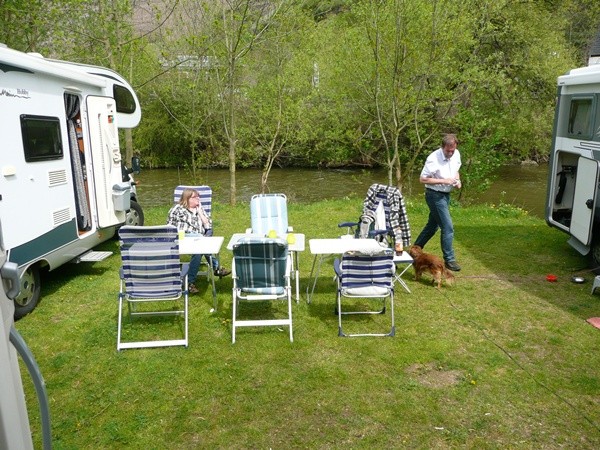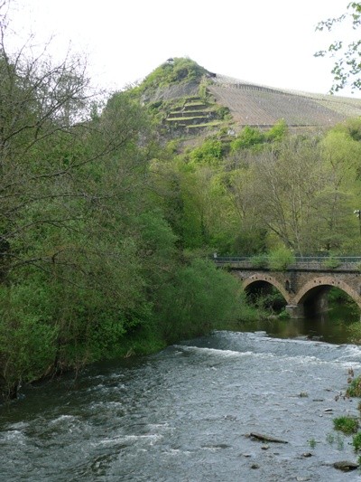 Das lange Wochenende übern Brückentag zum 1. Mai verbringen wir an der Ahr und wollen mit Wiebke und Konrad und Uschi und Dieter weinwandern. Wir sind die ersten auf dem Campingplatz und Bruno genießt die Befreiung aus dem Womo nach über 2 Stunden anstrengender Autobahnfahrt und wälzt sich erst mal ausgiebig.