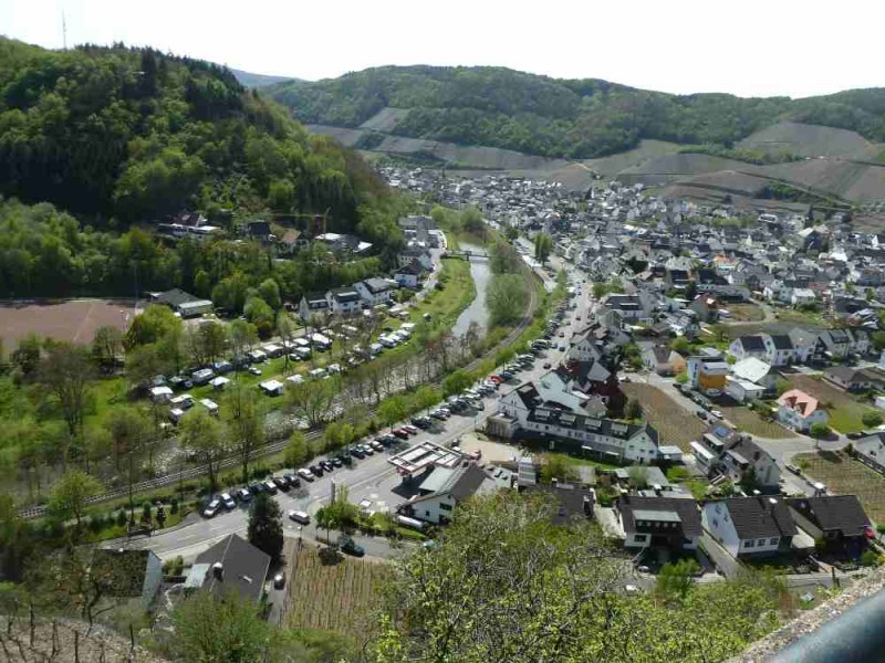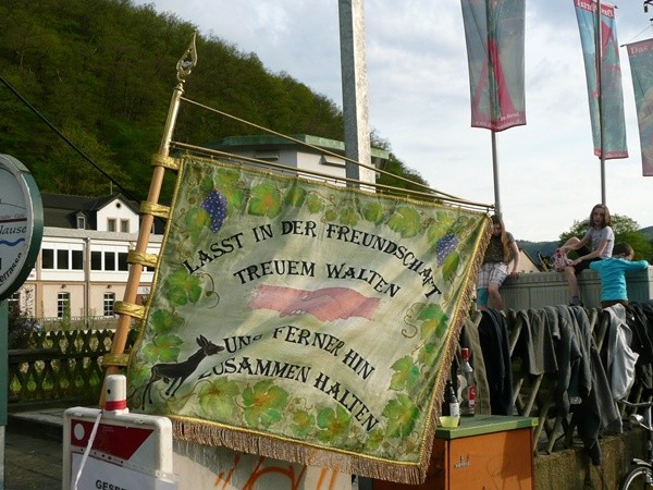 Wir gehen ein wenig durch Dernau, kehren bei EDEKA ein, und auf dem Rückweg sehen wir, dass der Junggesellenverein mit den Vorbereitungen fürs Maibaumstellen beginnt. Hier wird der Baum nämlich schon am 30.4. aufgestellt. Das erklärt auch, warum schon gestern feiernde Burschen auf Traktoranhängern durch die Gegend fuhren. Sie haben nämlich schon fürs Material gesorgt und mit den Feierlichkeiten begonnen. Bis weit in die Nacht hörten wir sie grölen und singen und mit Kanonenschlägen ihrer Freude Ausdruck verleihen.